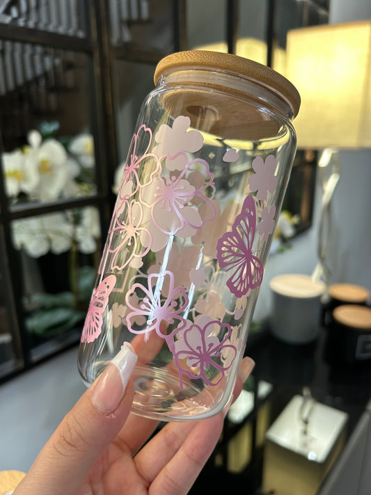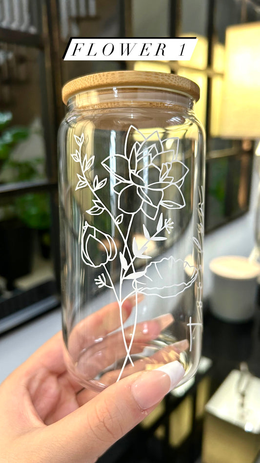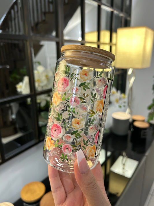 Personalized Floral Glass Cans